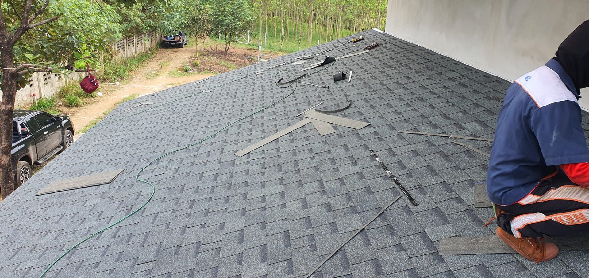 บริษัท ซีเอชเค สตรัคเจอร์ แอนด์ เซอร์วิส จำกัด (CHK STRUCTURE AND SERVICE CO., LTD.) สาขาเกาะสมุย ได้เสร็จสิ้นโครงการติดตั้งแผ่นซิงเกิ้ลรูฟ (Shingle Roof) ให้กับร้านคุณทรงพล ณ ปลายแหลม ซอย 8 อย่างสมบูรณ์แบบ