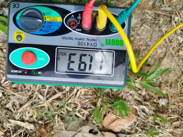 1. **การตรวจวัดค่าความต้านทานดินเบื้องต้น:** ทีมช่างผู้เชี่ยวชาญของเราได้ใช้เครื่องมือวัดความต้านทานดินแบบดิจิทัลรุ่น DUOYI DY4100 Digital Earth Tester เพื่อวัดค่ากราวด์เดิมของบ้านคุณสตีเฟ่น (ดังแสดงในภาพ) ผลที่ได้คือค่าความต้านทานสูงกว่าค่ามาตรฐานที่กำหนดโดยการไฟฟ้า ซึ่งยืนยันความจำเป็นในการปรับปรุงระบบ