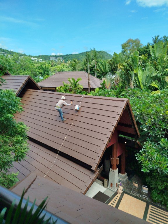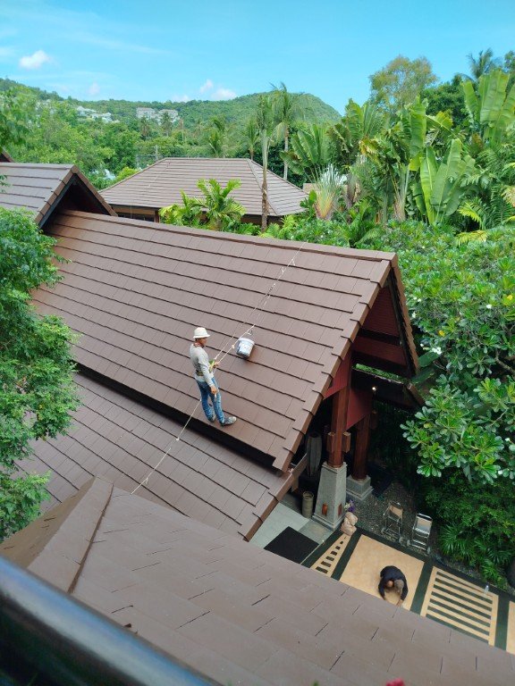 งานทาสีหลังคาโรงแรมบ่อผุด เกาะสมุย