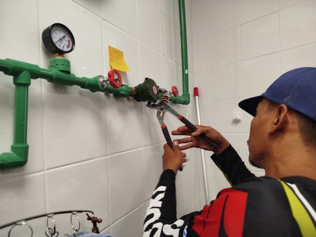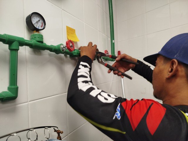 ทีมงาน CHK Samui Fix ดำเนินการติดตั้งและซ่อมแซมระบบท่อ PPR อย่างรวดเร็วและมีประสิทธิภาพสูงสุด เพื่อให้กระทบต่อการดำเนินงานของห้างสรรพสินค้าน้อยที่สุด โดยมีการตรวจสอบแรงดันน้ำ (Pressure Test) ด้วยเกจวัดอย่างละเอียดดังปรากฏในภาพ เพื่อยืนยันว่าระบบประปาใหม่มีความสมบูรณ์ 100% ก่อนส่งมอบงาน